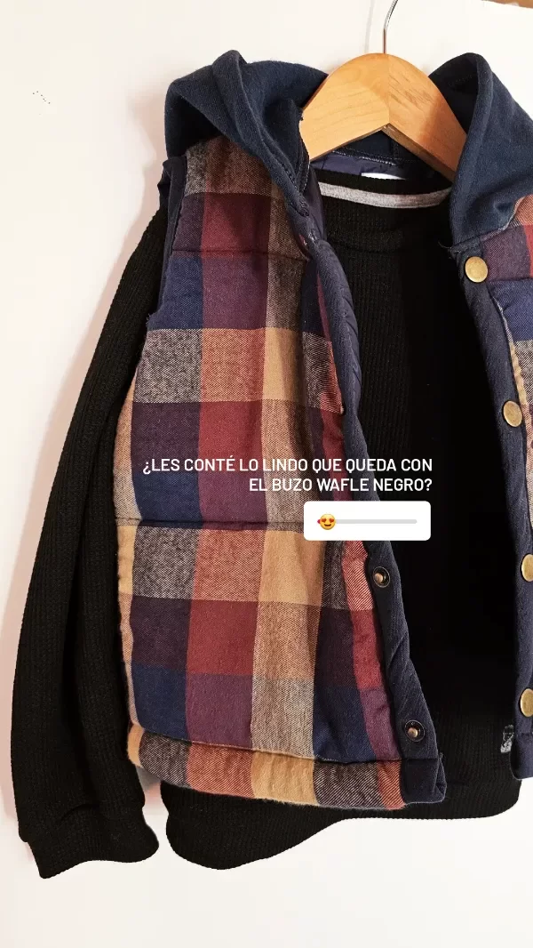 Confeccionado en tela waffle, color negro. Botones en cuello para mejor postura.