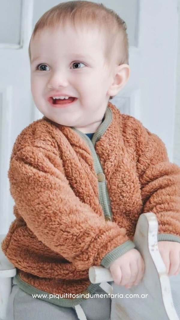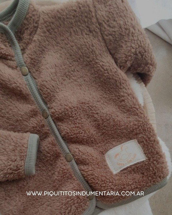 Campera de corderito bifaz color chocolate, combinada con ribete en verde militar.